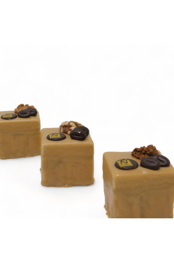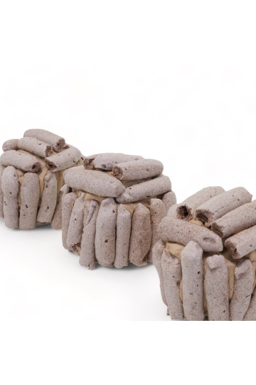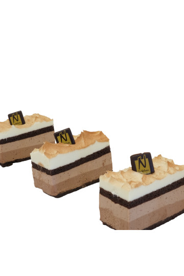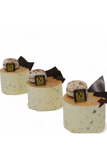 Dans une élégante coque en chocolat noir, façonnée comme une véritable noix de coco, se cache une création aussi délicate que dépaysante, une mousse légère à la noix de coco, un crémeux passion subtilement acidulé, et un biscuit croustillant coco pour une touche de texture irrésistible.