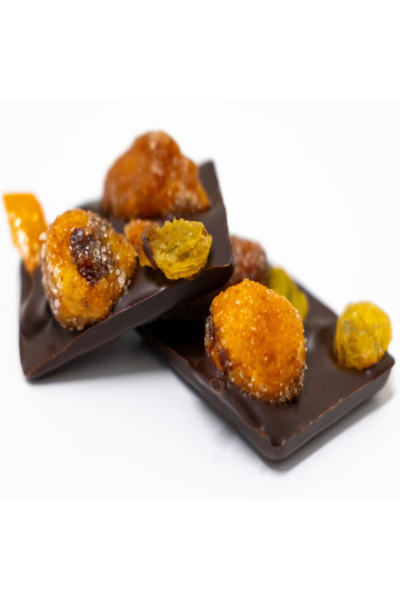 Chaque tablette est généreusement garnie de fruits secs premium et d’écorces d’orange confite, pour une dégustation riche en textures et en saveurs.