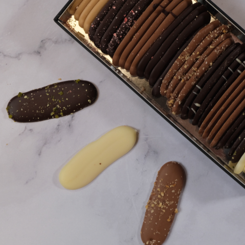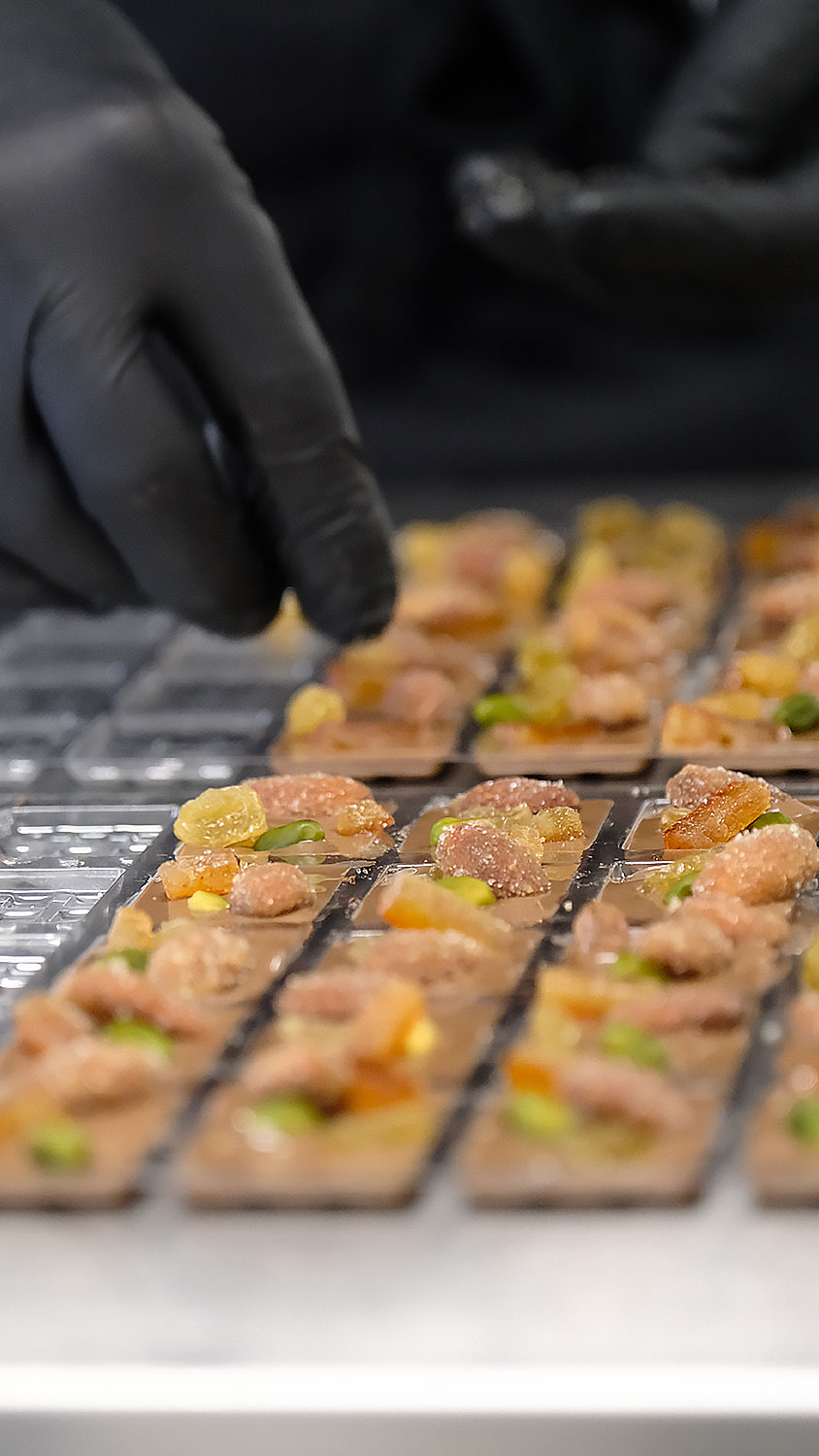 Nos chocolats sont réalisés à la main dans notre manufacture stéphanoise, en respectant un procédé de fabrication artisanal, avec des matières premières sélectionnées pour leur excellence. Nous prônons un savoir-faire qui privilégie la qualité et l'authenticité.