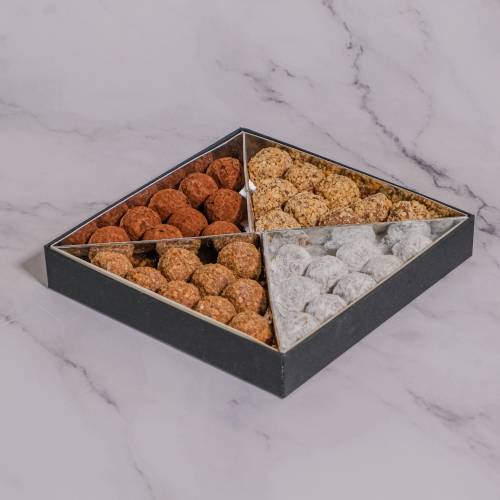 Nous proposons une variété de chocolats (pralinés, ganaches, truffes) disponibles en coffrets élégants, personnalisables avec votre message d'entreprise. Chaque création est soigneusement fabriquée à partir des meilleurs ingrédients (noisettes du Piémont, vanille de Madagascar etc...).