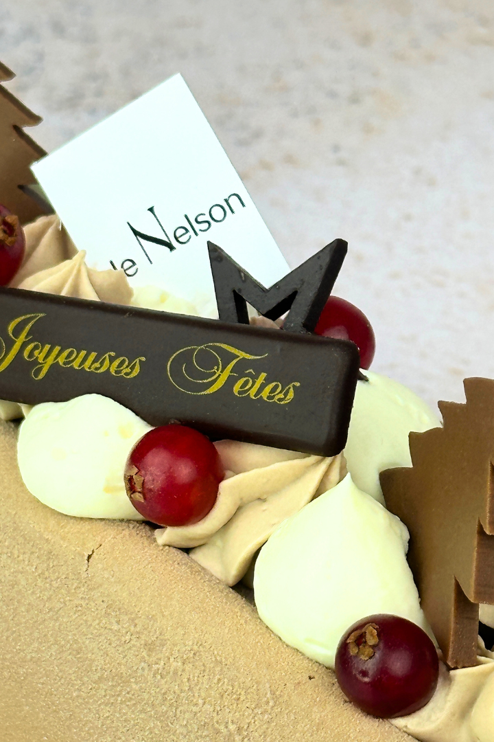 Plongez dans un voyage gourmand avec notre bûche 3 chocolats, un dessert raffiné et généreux qui célèbre le chocolat sous toutes ses formes.