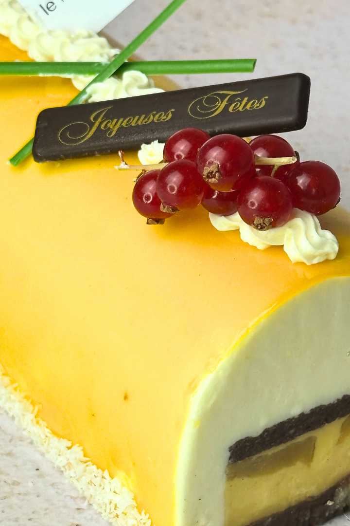 Offrez à vos papilles un aller simple vers les tropiques avec notre bûche La Tropicale, une création pâtissière audacieuse et ensoleillée, parfaite pour illuminer vos desserts de fin d’année.