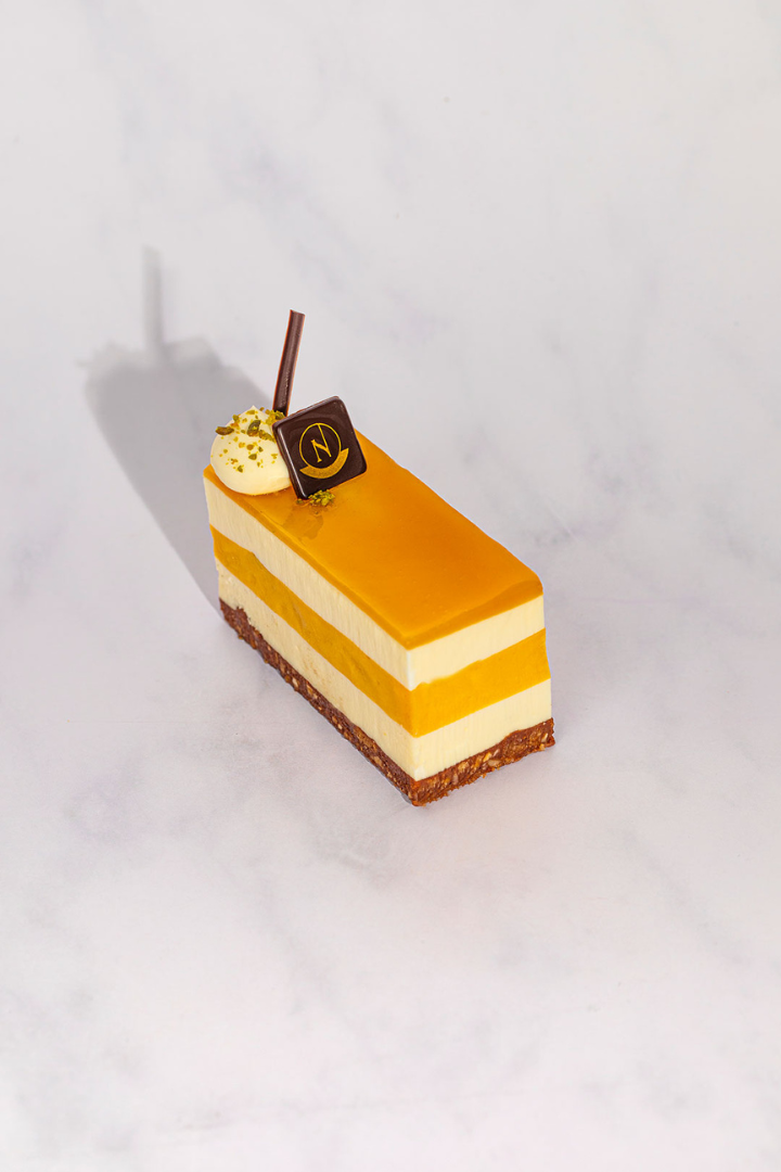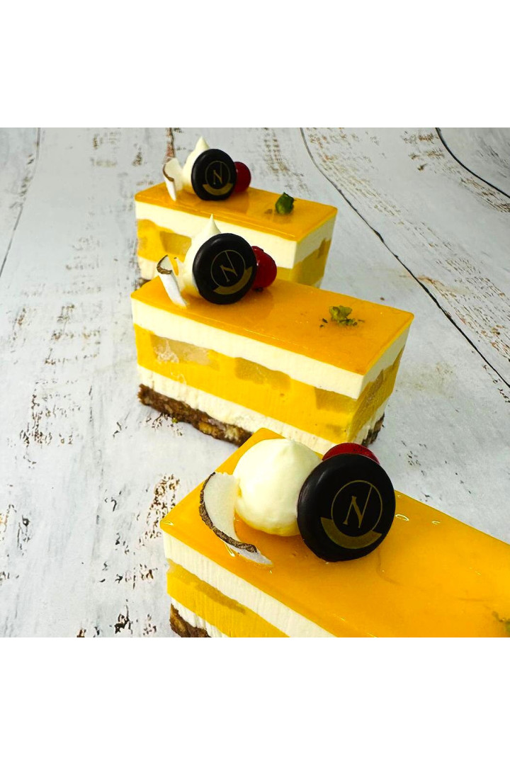 Laissez vous emporter par la douceur ensoleillée de notre entremet Tropical, une création légère et raffinée aux accents exotiques.