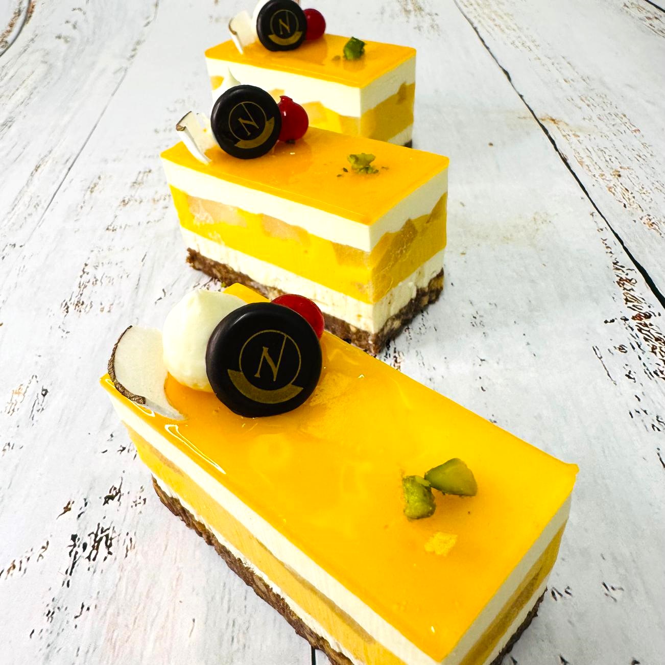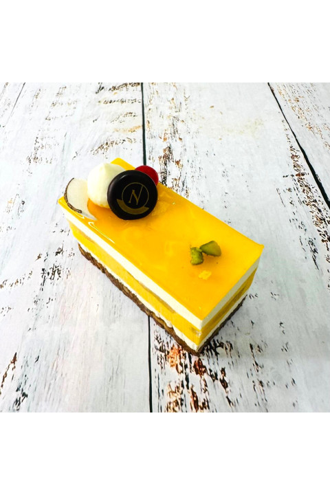 Laissez vous emporter par la douceur ensoleillée de notre entremet Tropical, une création légère et raffinée aux accents exotiques.
