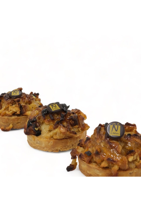 Pommes râpées cuites au four avec un touche miel, frangipane et pâte feuilleté.