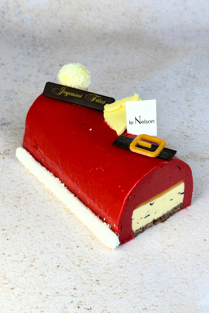 Pour profiter pleinement des saveurs fruitées et chocolatées de notre bûche glacée du Père Noël, nous vous recommandons de la sortir du congélateur 15 à 20 minutes avant la dégustation.